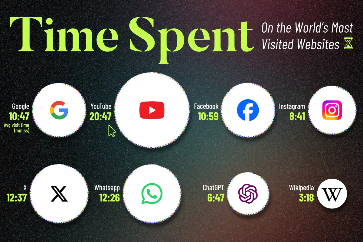 یوتیوب، پلتفرم پیشرو پخش ویدیو در جهان، با ۲۰ دقیقه و ۴۷ ثانیه میانگین زمان بازدید در هر بازدید، بیشترین زمان را از کاربران خود جذب میکند. این آمار نشان میدهد که کاربران به طور قابل توجهی در یوتیوب وقت میگذرانند و این پلتفرم به عنوان دومین وبسایت پربازدید در دنیا پس از فیسبوک، همچنان تعامل بالایی با کاربران خود دارد. در سال ۲۰۲۴، یوتیوب ۳۶.۲ میلیارد دلار درآمد تبلیغاتی تولید کرده است، و کشورهای ایالات متحده، هند و ژاپن از بزرگترین منابع ترافیک این سایت هستند.