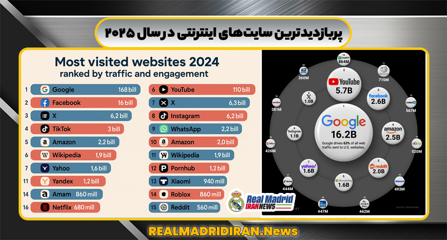 پربازدیدترین سایتهای اینترنتی در سال ۲۰۲۵